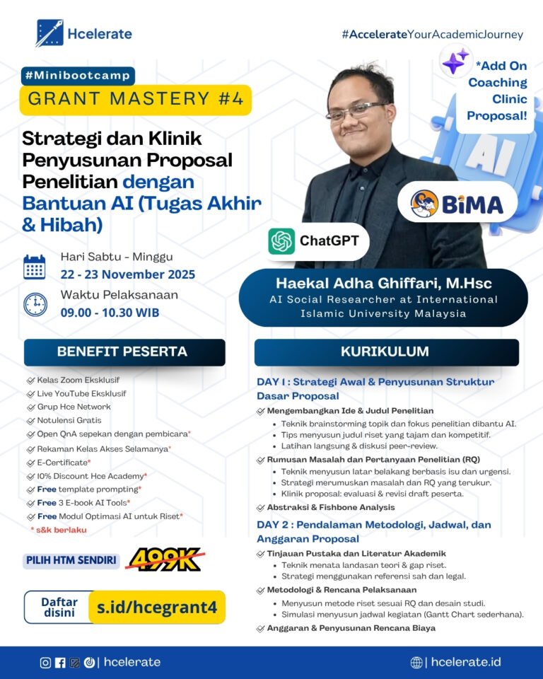 Dapatkan GRATIS 3 E-book AI for research seharga RATUSAN RIBU bagi peserta yang mendaftar di website Hcelerate!